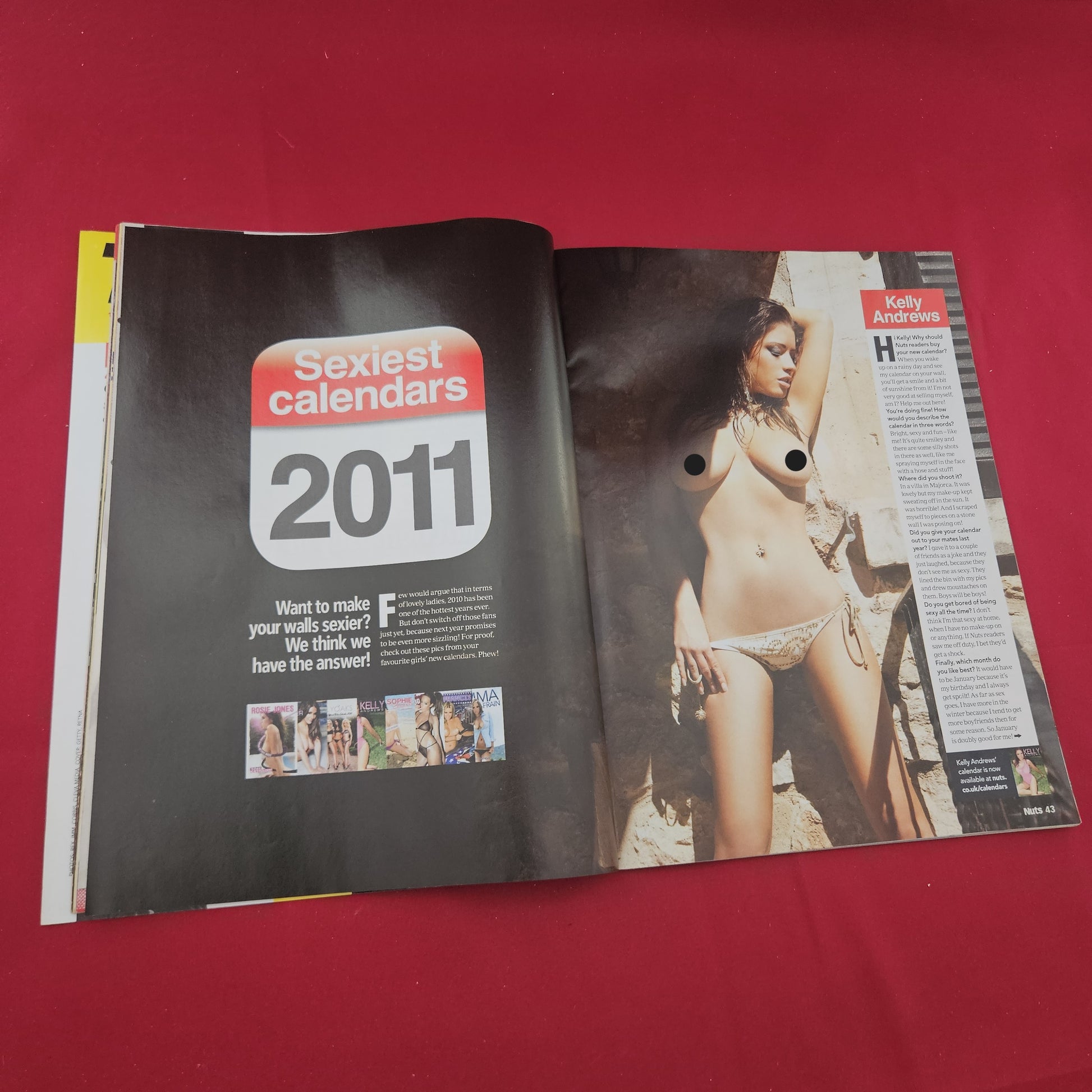 Sexiest Calendars 2011!: An intact, 12-page special mini-mag attached to the front cover featuring gorgeous preview shots and interviews with top models including Lucy Pinder, Rosie Jones, Sophie Howard, Gemma Merna, Jennifer Metcalfe, Leah Francis, Lindsey Strutt, Emma Frain, and Kelly Andrews.